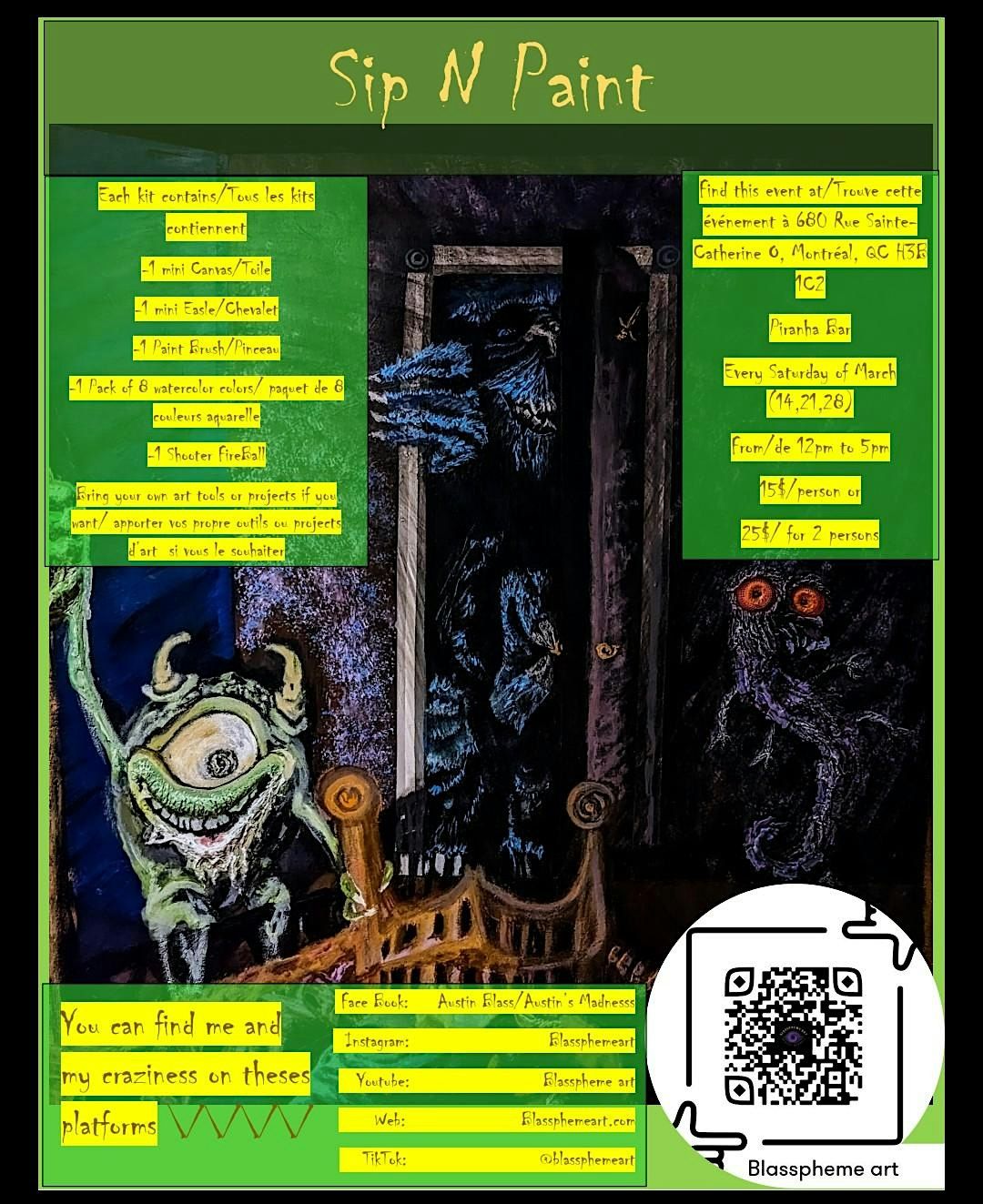 Buvez en même temps de peinturer au piranah bar les Samedisss 14 21 et 28 de 12pm @ 5pm pour le moi de Mars
