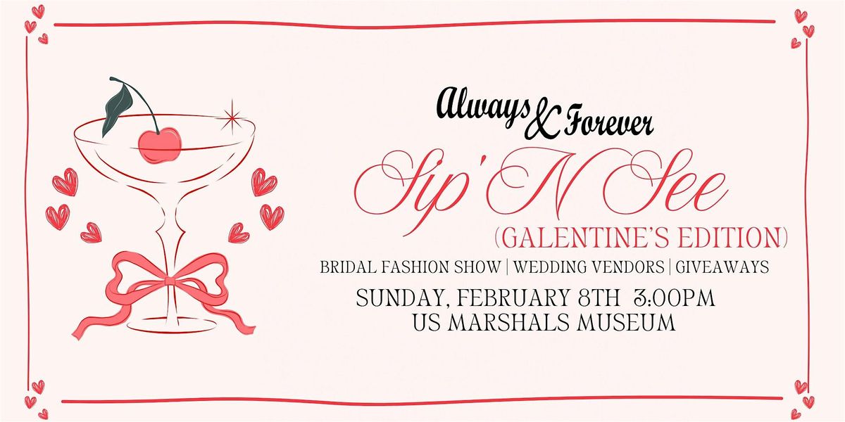 Join Always & Forever for our 4th Annual Sip ’N See, a Galentine’s-inspired bridal fashion show hosted at the U.S. Marshals Museum.
