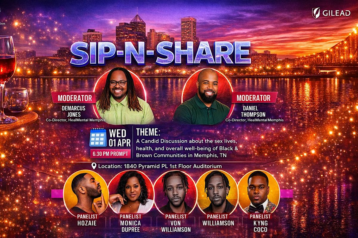 Join us for a candid discussion about the sex lives, health, and overall well-being of Black and Brown communities in Memphis, TN. Free food and wine will be provided. Registration via Eventbrite is required to attend.