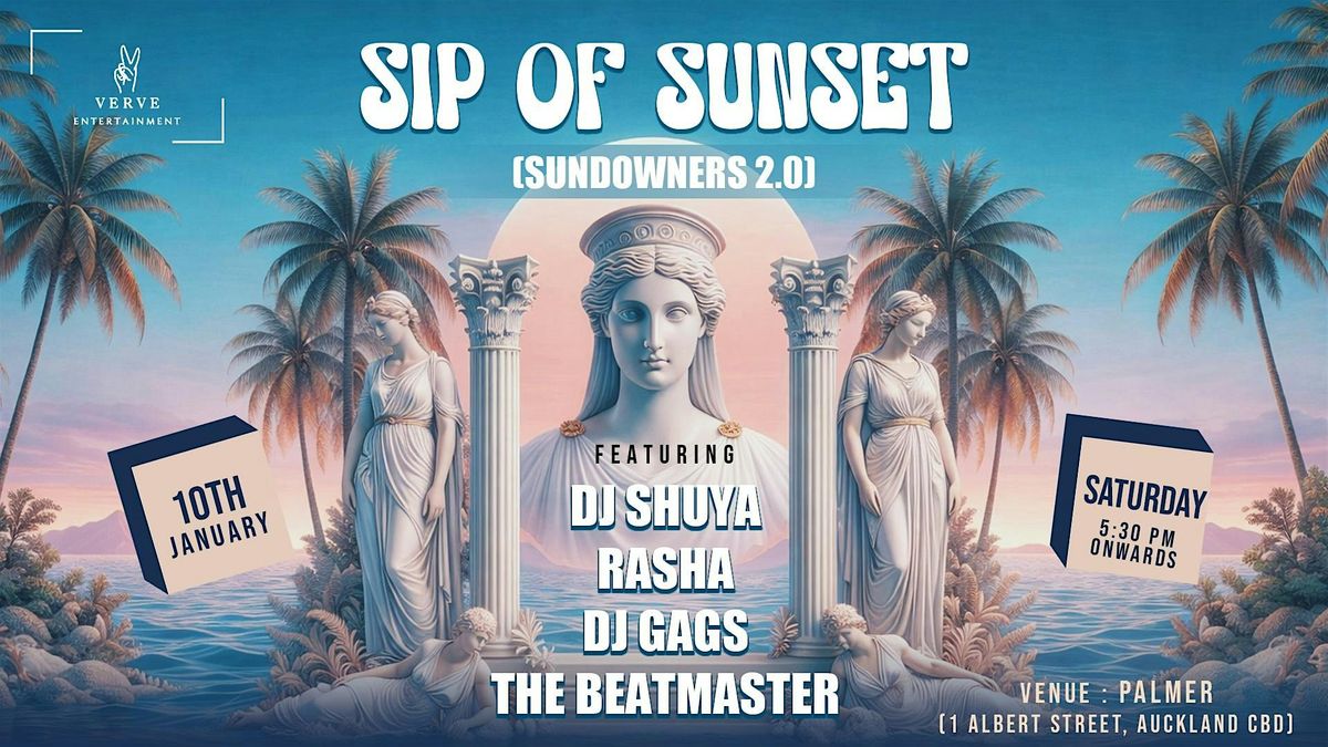 Get ready for SIP OF SUNSET (SUNDOWNERS 2.0) happening at Palmer Bar on January 10, 2026 at 5:30 PM (Pacific Time).