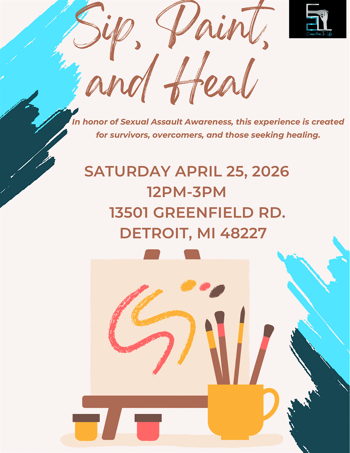 Sip, paint, and heal in an intimate safe space for survivors, overcomers, and those ready to begin their healing journey,