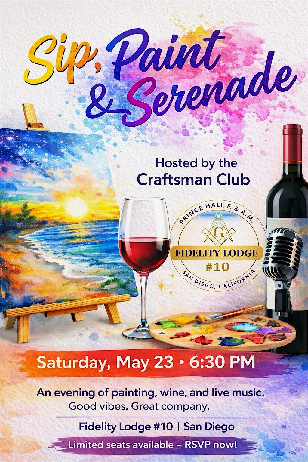 Sip, Paint, and Serenade! Please reach out to a member of Fidelity Lodge #10 to buy your tickets. EVENT BRITE LINK IS SIMPLY FOR HEADCOUNT!About this Event