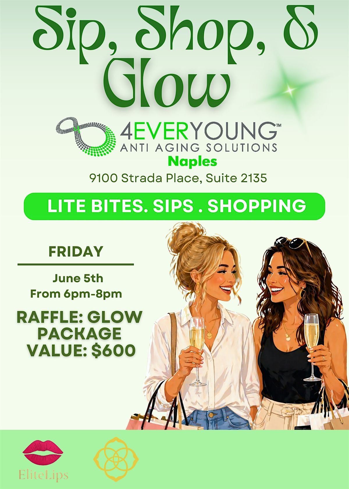 Sip shop and glow! With vendors and discounted treatments at 4Ever Young Naples.