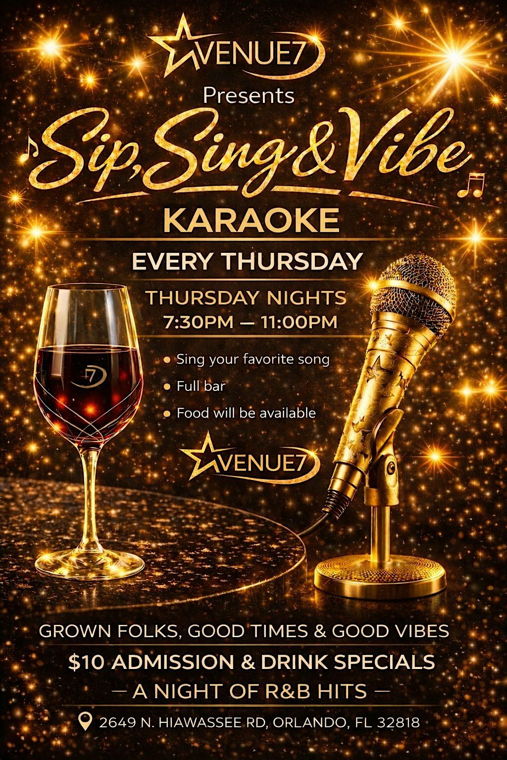 Join us every Thursday night at Venue Seven for the ultimate karaoke experience β where the drinks are flowing, the vibes are unmatched, and the mic is yours π€