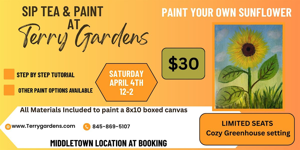 Welcome to Sip Tea & Paint ! Join us at Terry Gardens for a fun-filled day of creativity and relaxation. Grab a drink, pick up a paintbrush, and get your hands dirty with some painting. This in-person event is the perfect opportunity to unwind, socialize, and unleash your inner artist . No experience necessary – just come ready to have a good time! Don't miss out on this unique experience to sip and paint in a beautiful garden setting. See you there!