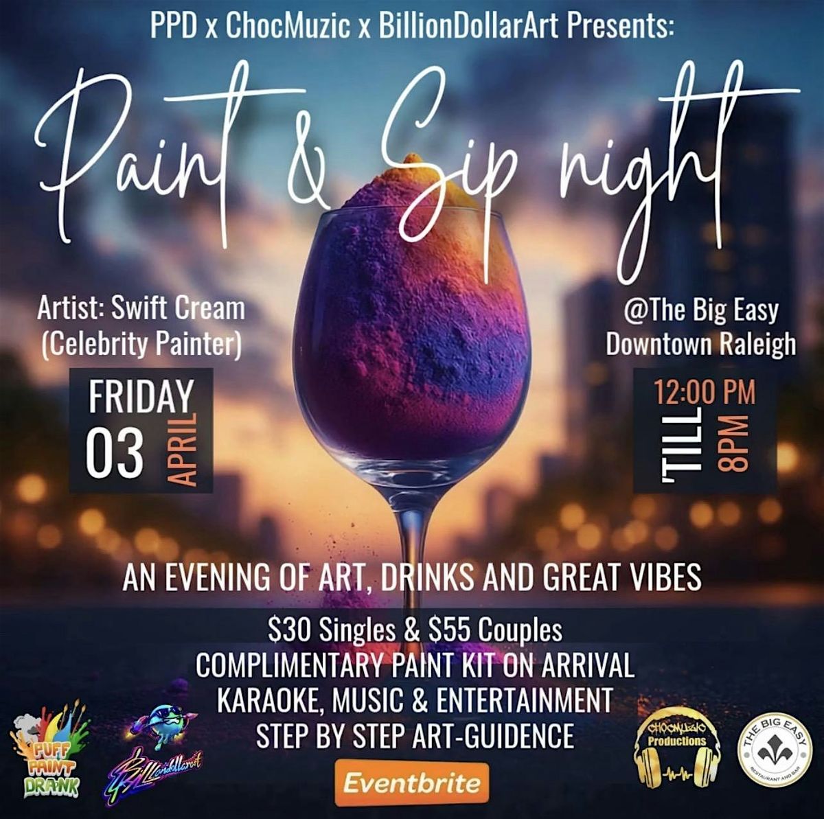 Paint & Sip Night at The Big Easy! Enjoy art, drinks, karaoke & vibes in downtown Raleigh. Singles & couples welcome.