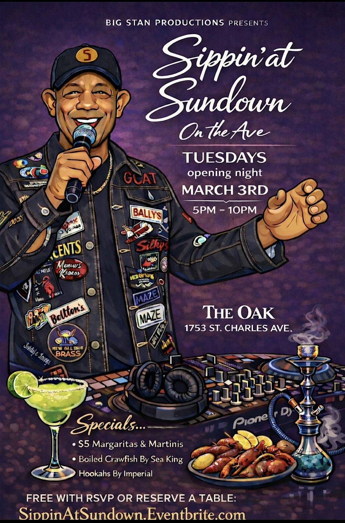 You're invited you to end your day with good people and good vibes at the Sippin' At Sundown on TUESDAY EVENINGS After Work on St Charle AveAbout this Event