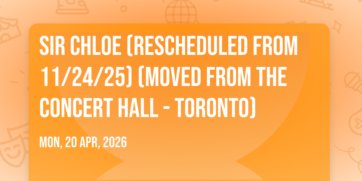 π Location: 43.6328, -79.4218π Be part of history at Sir Chloe (Rescheduled from 11/24/25) (Moved from The Concert Hall - Toronto), an extraordinary gathering that will captivate your imagination! ποΈ The prestigious Annabel's Music Hall in Toronto, ON sets the stage for an unforgettable experience on April 20th, 2026 at 12:00 AM. β¨ They are bringing together the finest elements of entertainment and innovation to create moments that will take your breath away. From the moment you arrive, you'll be immersed in an atmosphere of wonder and excitement. π― This carefully planned event ensures every guest experiences something truly special. π Early booking is recommended for this must-attend event of the season!