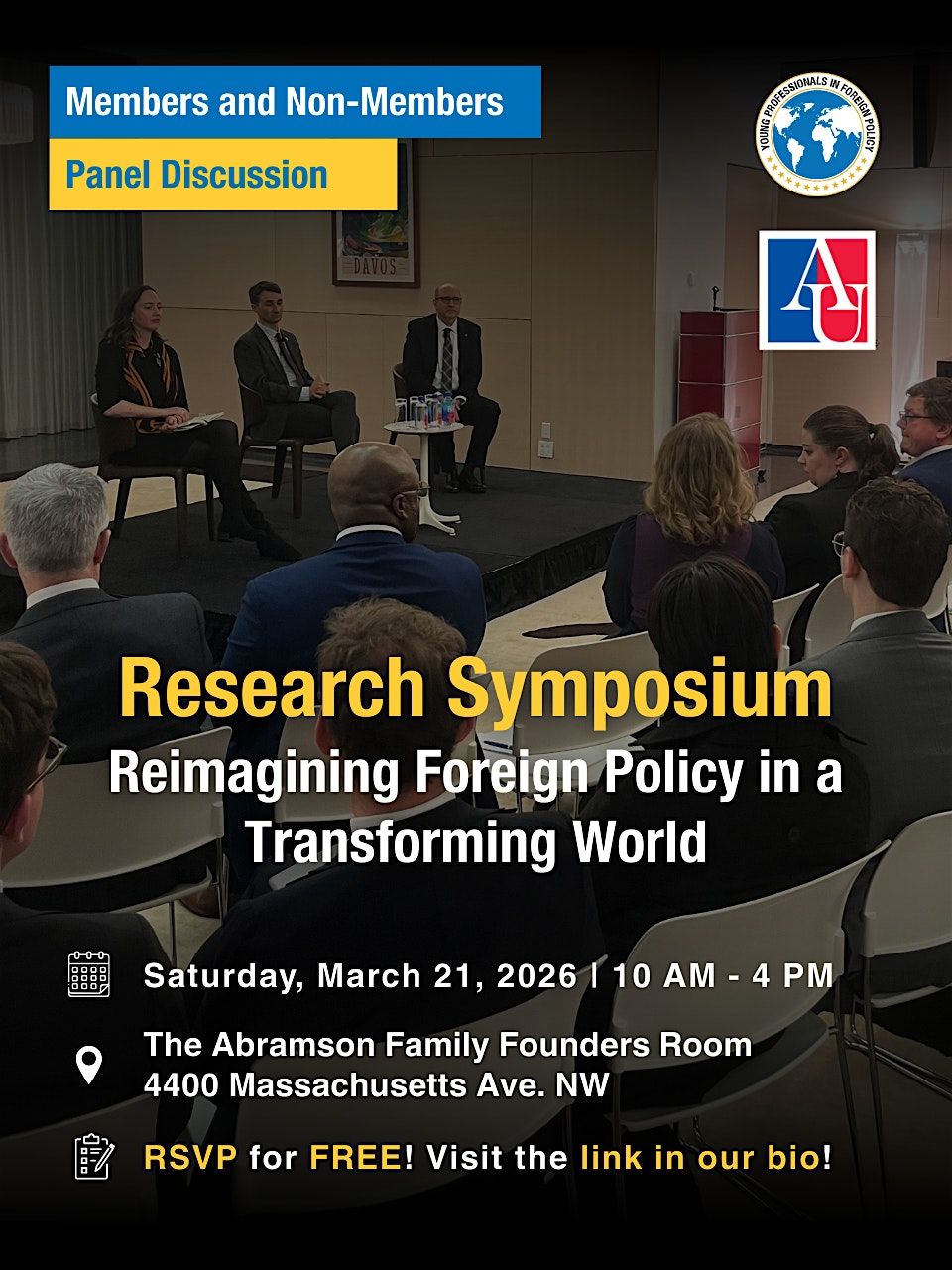 Join us for our Inaugural SIS-YPFP Research Symposium: Reimagining Foreign Policy in a Transforming World. The symposium will feature research from the SIS graduate community and YPFP membership focusing on emerging technologies, AI, nation building, and our ever-changing world order.