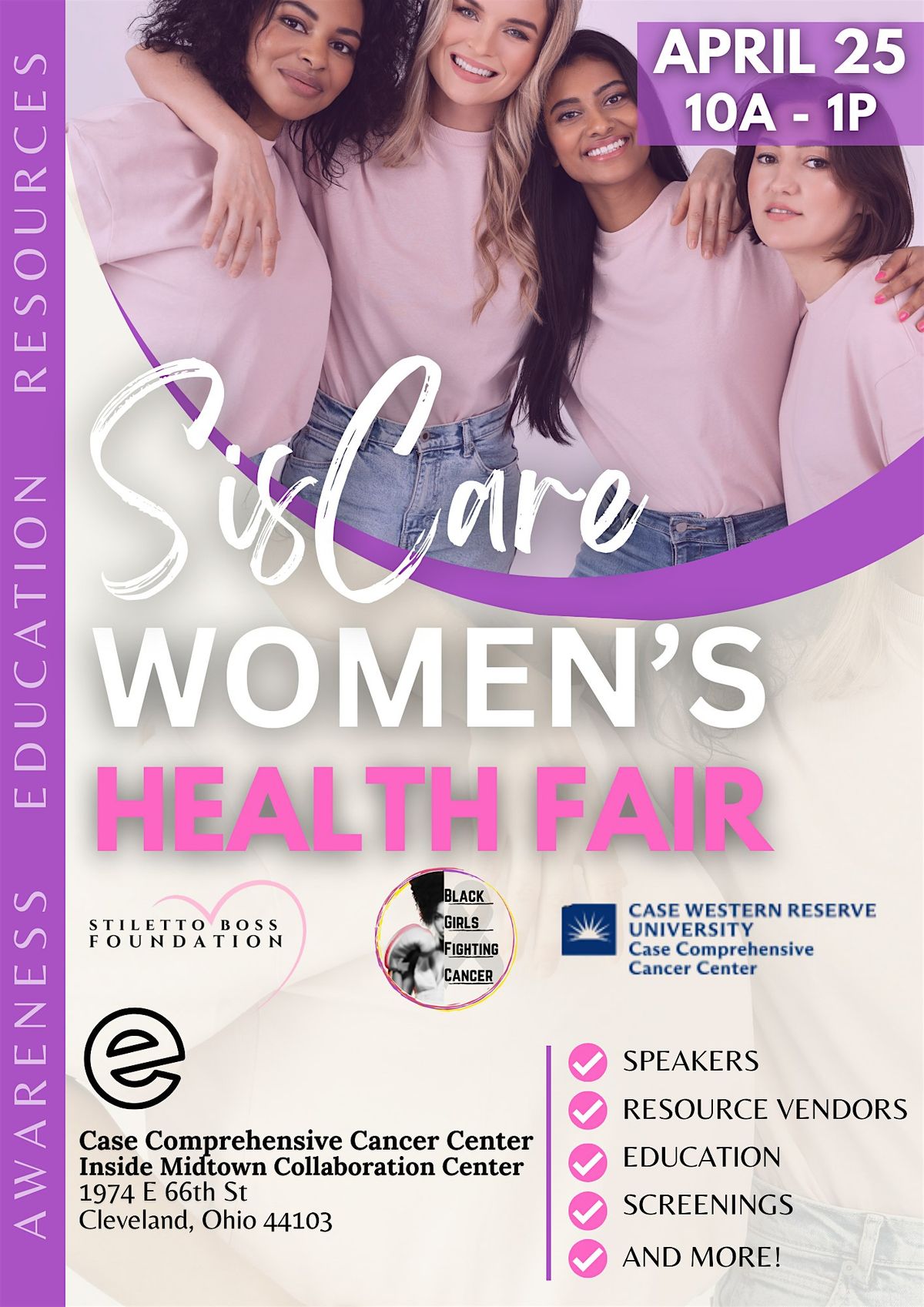 Our Annual Women’s Health Fair is a community-centered event designed to educate, empower, and support women in prioritizing their physical, emotional, and overall well-being. Hosted in partnership with Stiletto Boss Foundation, Black Girls Fighting Cancer, and Case Comprehensive Cancer Center, this impactful day brings together trusted experts, advocates, and resources all in one space.