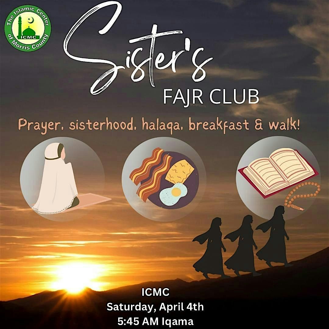 📿 This Saturday, April 4th, join the sisters for Fajr salah Iqama 5:45 AM, morning dhikr, a short reflection with the sisters, and breakfast, inshaAllah! We’d love to see you all there, inshaAllah.