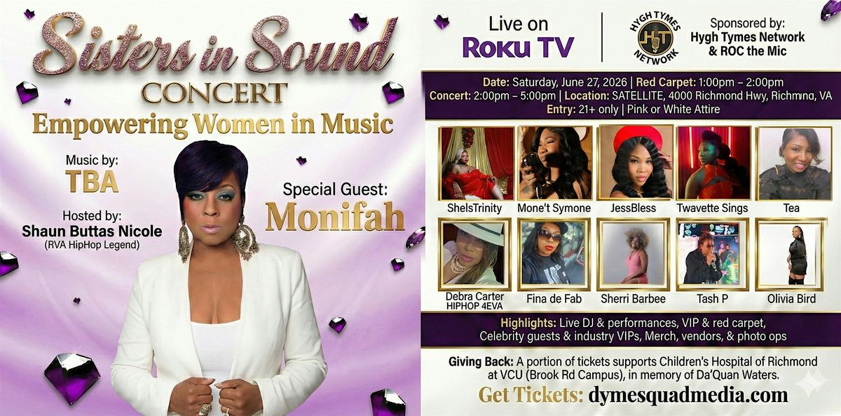 Join us for the ultimate celebration of women in music! The Sisters In Sound Concert brings together powerhouse indie artists and legendary guests for an unforgettable experience in Richmond, VA.Event Highlights: