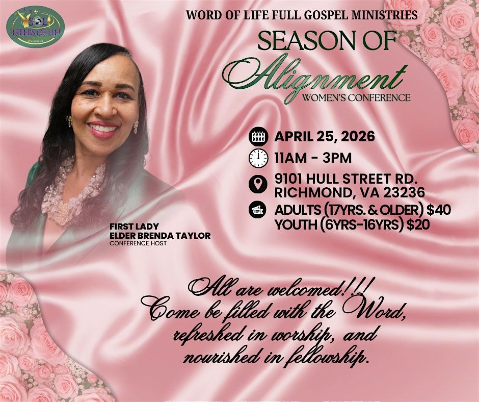 This is not just another conference—it’s your Season of Alignment, a divine invitation to step into deeper purpose, unshakable identity, and Spirit-led transformation alongside a powerful community of women. The Sisters of Life Women’s Conference 2026 is designed to awaken what’s been dormant, heal what’s been hidden, and realign you to lead boldly in every area of your life. If you feel the call to come into alignment with who God created you to be, this is your moment—secure your seat.