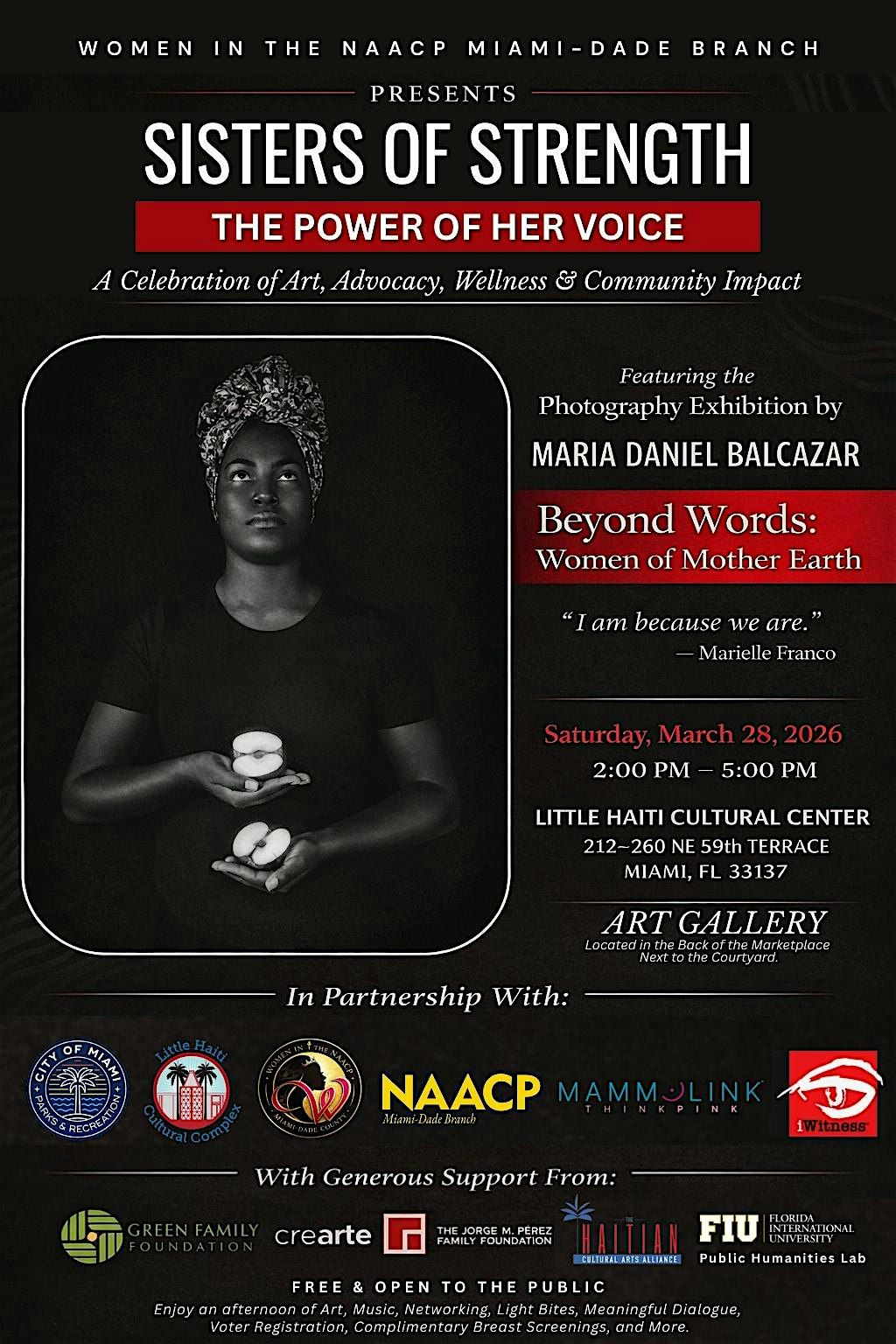 This gathering will bring together women from across our community for an afternoon of connection through art, dialogue, and empowerment. Held in partnership with the “Beyond Words: Women of Mother Earth” exhibit, curated by Carl Philippe Juste and featuring the work of artist Maria Daniel Balcazar, the program will celebrate the power, resilience, and voices of women while highlighting the work of the Women in the NAACP Committee, along with our community partners, and creating space for meaningful conversations around leadership, advocacy, wellness, and community impact.