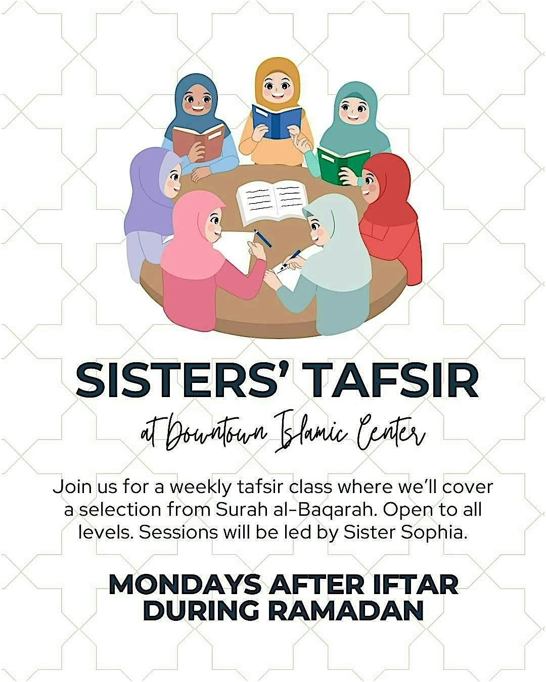 Join us for a weekly tafsir class where we’ll cover a selection from Surah al-Baqarah. Open to all levels. Led by Sister Sophia. #ramadan