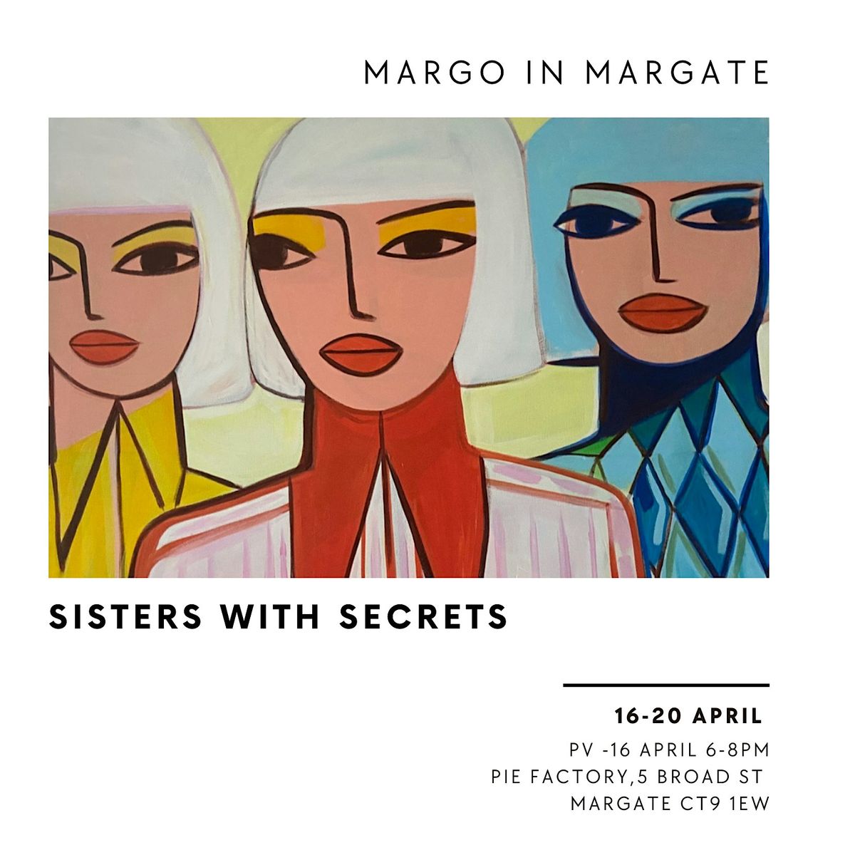 Sisters with Secrets transforms The Pie Factory into a space of quiet revelation, collective memory, and unspoken truths. At the heart of the exhibition is the idea that secrets are not signs of weakness, but evidence of survival — stories held back, swallowed, protected, or carried in silence. Through painting, print, and installation, Margo invites visitors into an environment where confession becomes a form of release and solidarity.