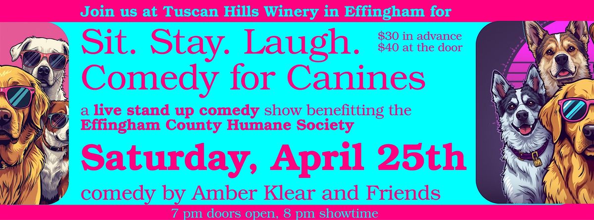 Sit, Stay, Laugh: Comedy for Canines. A benefit for the Effingham County Humane Society - LIVE Stand Up Comedy at Tuscan Hills WineryAbout this Event