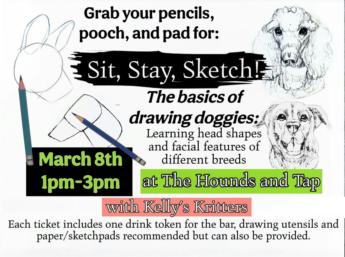 Join us at The Hounds & Tap on Technology Drive in Menomonee Falls, WI for a fun, relaxed session where you'll learn the basics of drawing doggies. Whether you're a total beginner or just want to sharpen your sketching skills, this event is perfect for you. We'll meet on March 8, 2026 at 1:00 PM (Central Time). We will be looking at head shapes, ears, eyes, and muzzles. This is a step one class, with a part two coming soon: Shading and Textures Class!