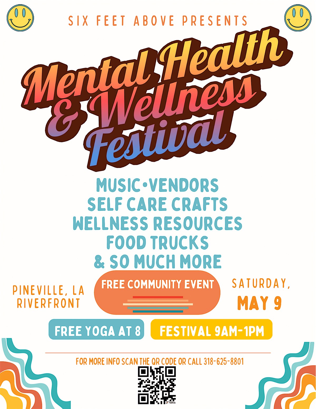 Join Six Feet Above on the Pineville Riverfront for our Fourth Annual Mental Health & Wellness Festival — and get ready for a morning that will lift your heart and fill your cup!