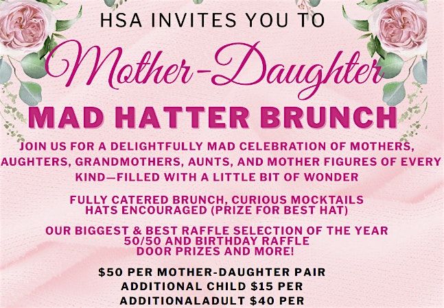 Get ready for a whimsical and fun-filled morning! Join us in person for the Mother-Daughter Mad Hatter Brunch and dive into a world of hats, laughs, and tasty treats. It’s the perfect chance to make memories, enjoy some quality time, and let your imagination run wild. Don your craziest hat and come share the joy with your favorite gal!