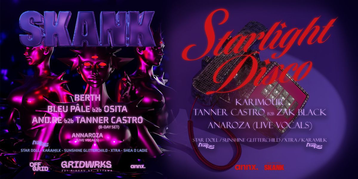 Our intention: let’s bring it back to basics: where being present in the room is foundational, where our fellow DJs are there to bring us on a sonic journey, allowing for moments of healing and connection, and most of all a safe space to truly be yourself. Let’s be mindful of phone use on the dance floor please. At SKANK & Starlight Disco we honour and pay homage to the black/latino/trans+ queer community. These spaces would not exist without the work and presence of queer people.This event is by the community and for the community!