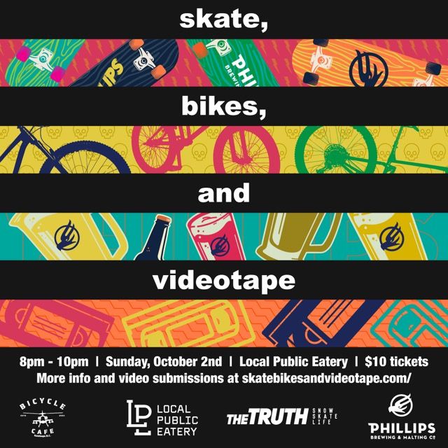 A video contest party to choose the winners hosted by Locals ! Tickets are available in advance for $10 (proceeds going to the Paved Pump track at the Kamloops Bike Ranch. Seating limited. Purchase tickets with cash from the Bicycle Cafe or the Truth Snow and Skate. SKATE BIKES AND VIDEOTAPE: