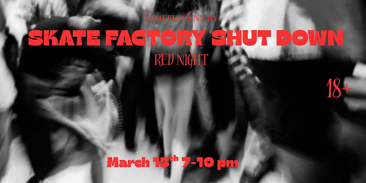 Get ready to roll with us for the SKATE FACTORY SHUT DOWN! This in-person event is all about fun, tricks, and good vibes. Whether you're a pro or just looking to have a blast, come hang out, skate, and make some memories. Don’t miss out on the action – it’s gonna be epic!