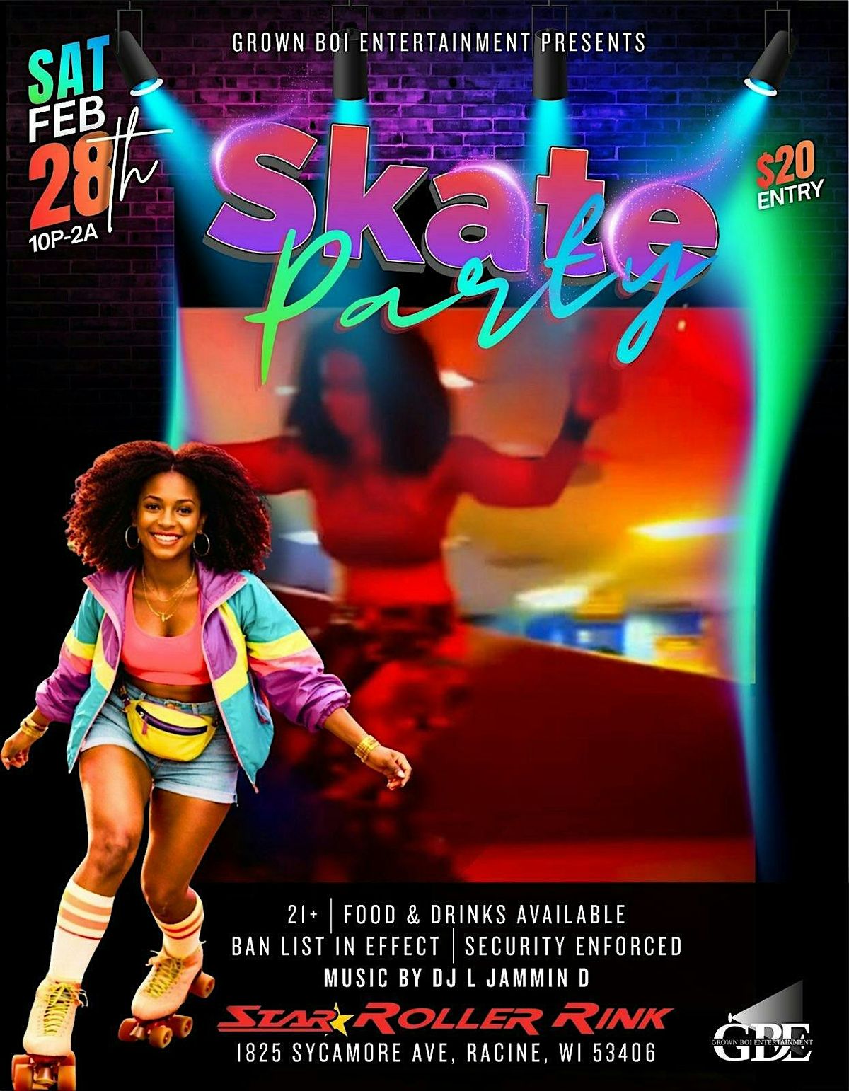 Skate Party is a high-energy, adults-only roller skating event presented by Grown Boi Entertainment, bringing late-night vibes to Star Roller Rink in Racine. Guests can enjoy smooth skating, music by DJ L Jammin D, and food and drinks in a secure, well-managed environment. This 21+ event offers a fun, social nightlife experience for skate lovers and music fans alike.