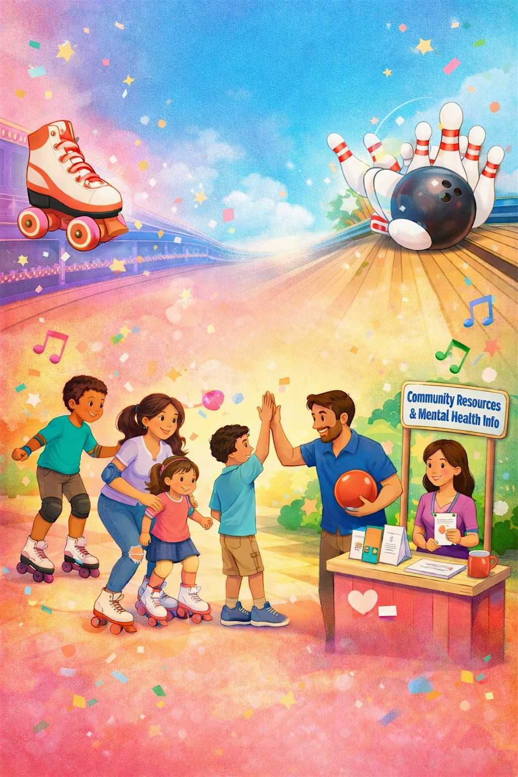 Join us for our Community Skating & Bowling Bash on Saturday, May 17th from 1:00 PM–4:00 PM! Enjoy an afternoon of skating, bowling, music, laughter, and family-friendly fun for all ages. This exciting community event is also a great opportunity to learn more about our mental health services and local community resources.