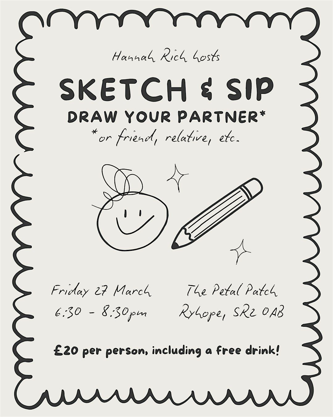 This event is designed for pairs—couples, friends, or relatives. You'll take it in turns sketching each other while enjoying a free drink from the café.