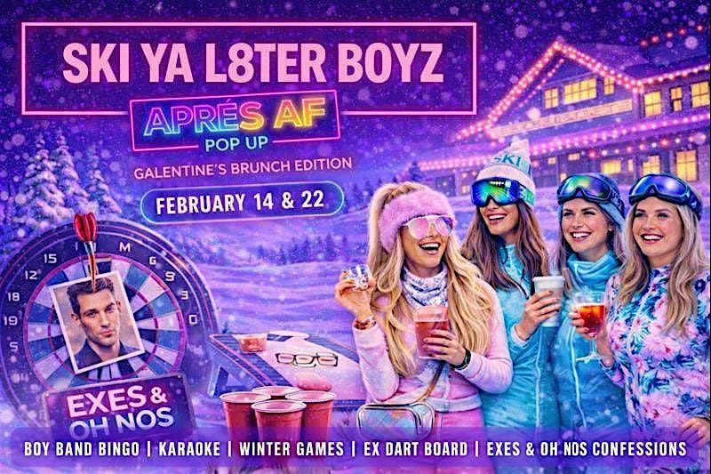 Welcome to Ski Ya L8ter Boyz, our most unhinged Galentine’s brunch inside the Après AF Pop Up series at The Point in Towson.