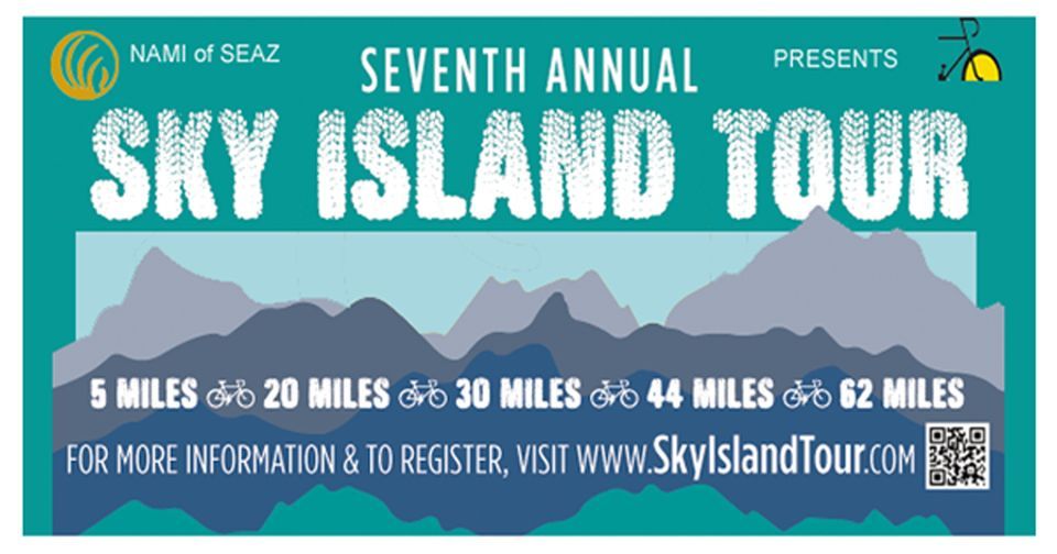 This scenic one-day bicycle tour in Cochise County, Arizona takes place on Saturday, October 7, 2023. All Sky Island Tour rides are a loop, beginning and ending at the Mall at Sierra Vista, 3800 El Mercado Loop, Sierra Vista, AZ. There are route ranging from 5 miles to 62 miles in length. E-bikes and E-assist bikes are welcome in the Sky Island Tour, as are recumbents, hand cycles, trikes, and ellypti-gos. Online registration CLOSES on Thursday, October 5, 2023 at midnight, 12:00am. You can register in person at packet pickup on Friday 5:30-8:30pm, October 6 at the Mall at Sierra Vista or on Saturday, October 7 starting at 6:00am. FOr more registration and other important information, please visit https://skyislandtour.com