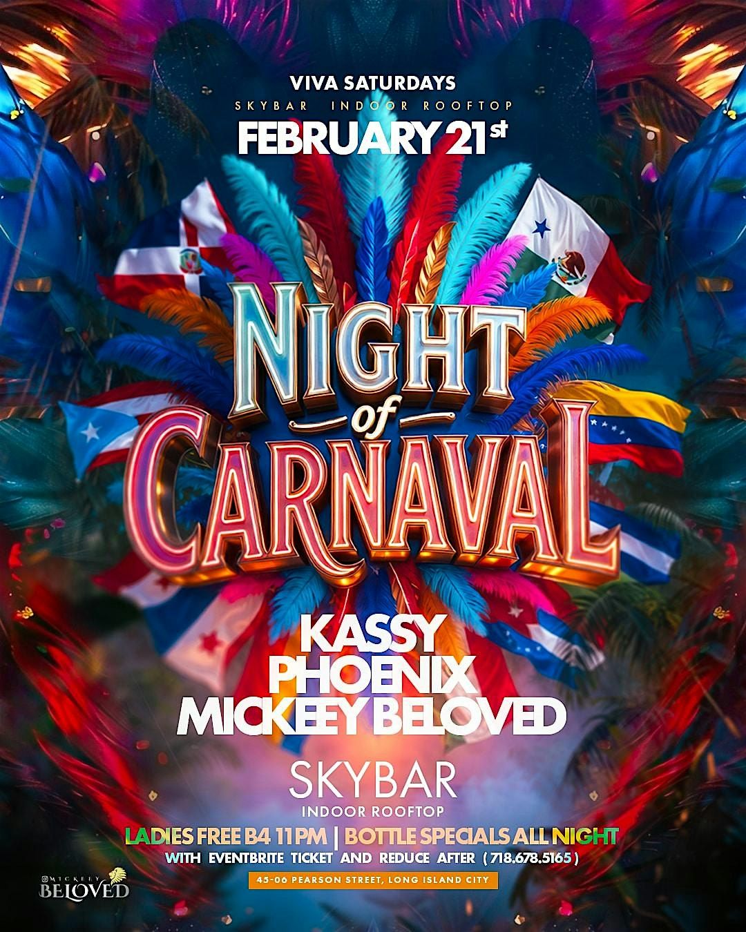 For Saturday, February 14th, we turn it into a Night of Carnaval β colorful, electric, and unforgettable.