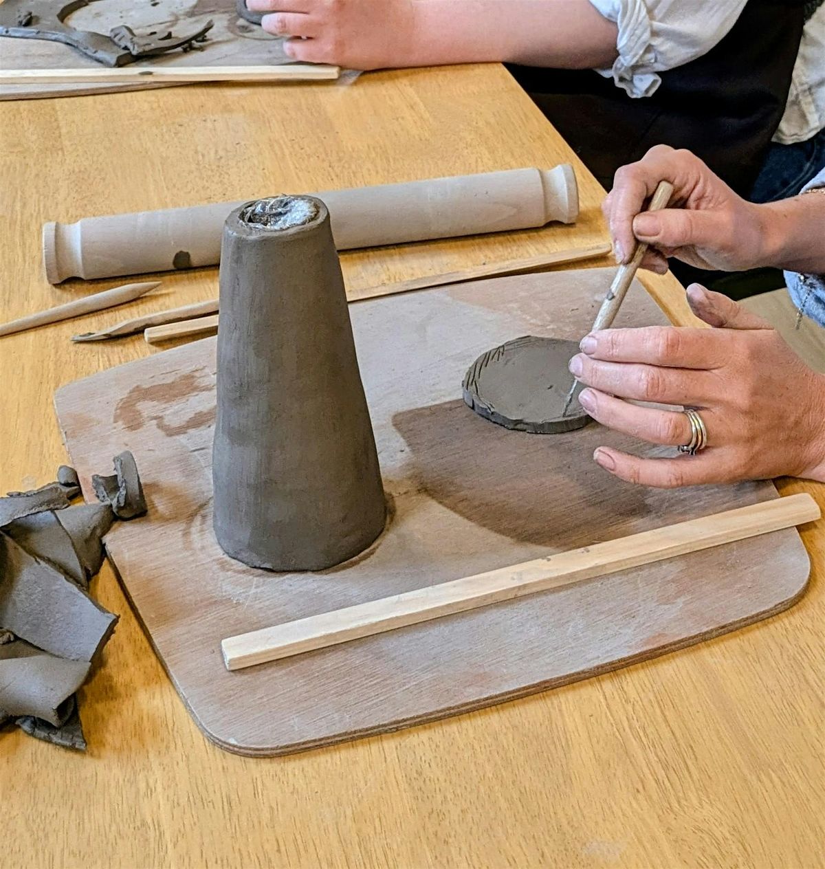 In this wonderful beginners pottery class you will create vases using slab building techniques, and add relief shapes for decoration. A great introduction to the joy of pottery!