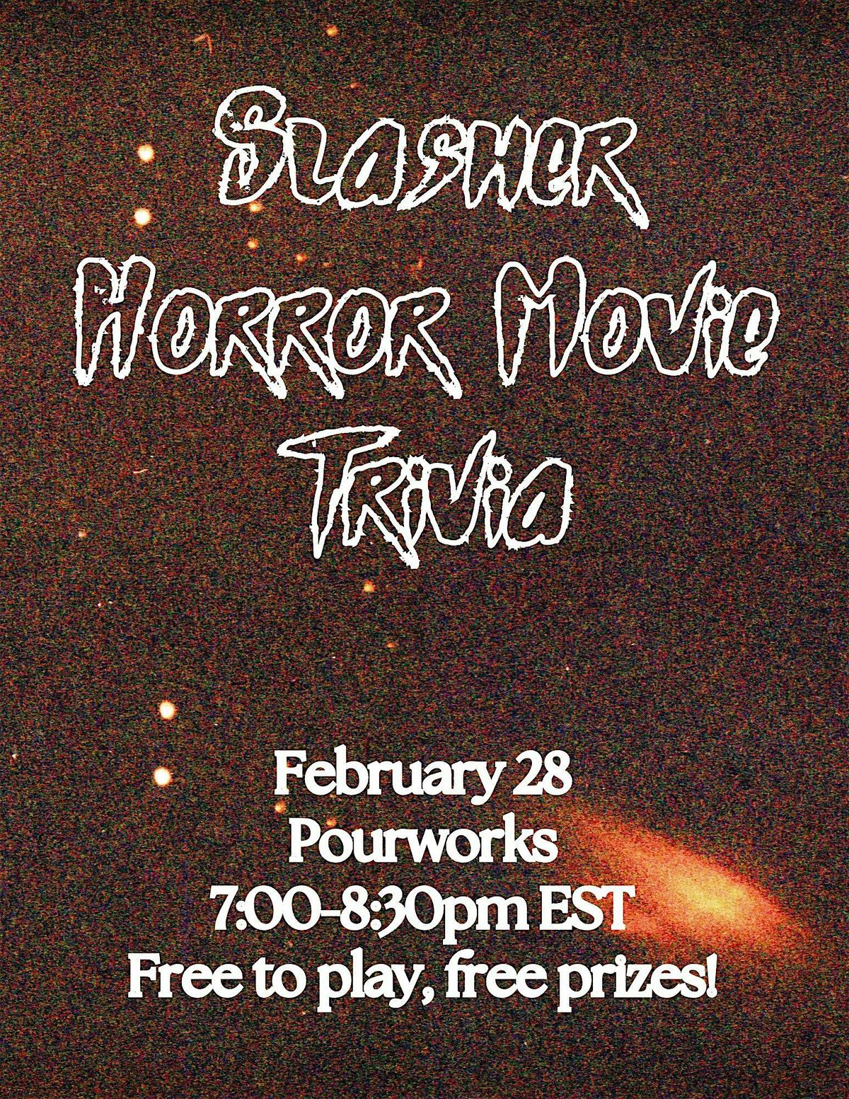 February 28 at 7PM — test your horror knowledge, survive the rounds, and claim the prizes. From masked maniacs to final girls, only the sharpest minds make it out alive.