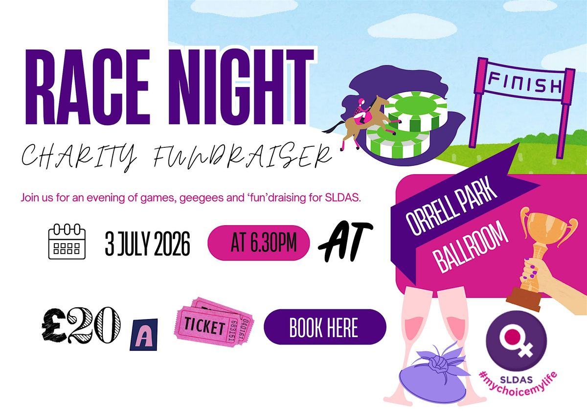 Join us for an evening of games, geegees and ‘fun’draising for SLDAS - South Liverpool Domestic Abuse Services.
