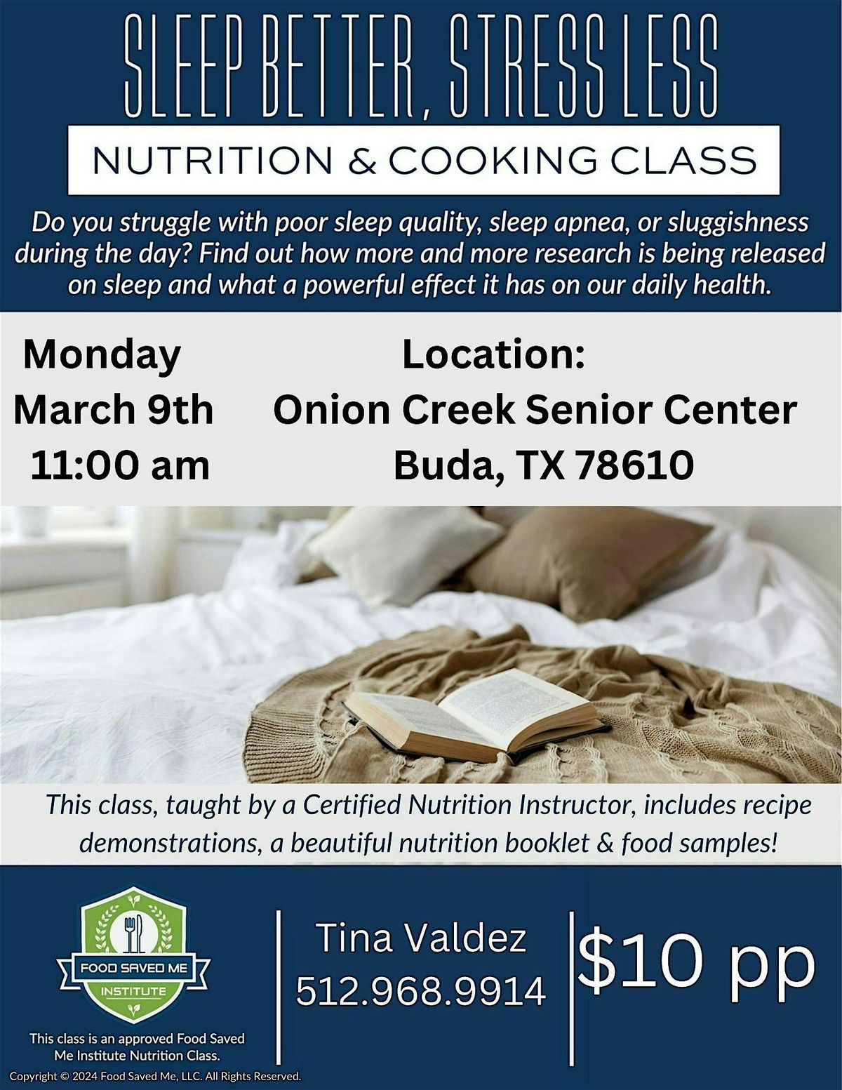 Sleep Better, Stress Less Nutrition & Cooking class