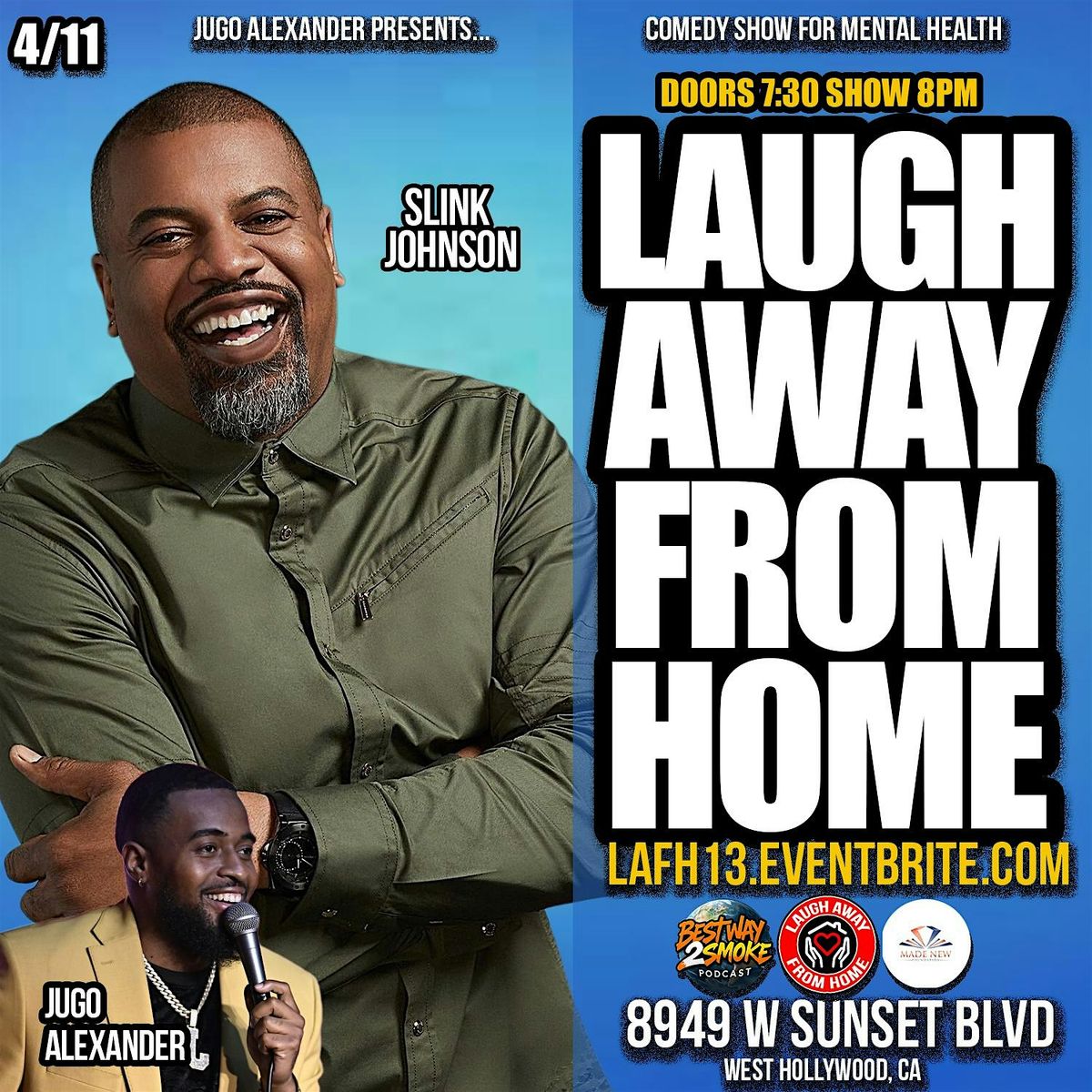 LAUGH AWAY FROM HOME IS A COMEDY SHOW BUILT TO GIVE YOU A BETTER MENTAL HEALTH. PLEASE COME ENJOY A NIGHT OF LAUGHS FOOD DRINKS AND VIBES.