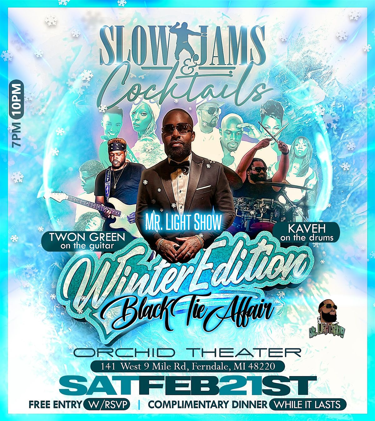 Welcome to Slow Jams & Cocktails-Winter Edition at Orchid Theatre! Get ready for a cozy night filled with soulful tunes and delicious drinks. Join us on February 21, 2026 at 7:00 PM (Eastern Time) for a magical evening. Let's unwind and enjoy the winter vibes together. See you there!