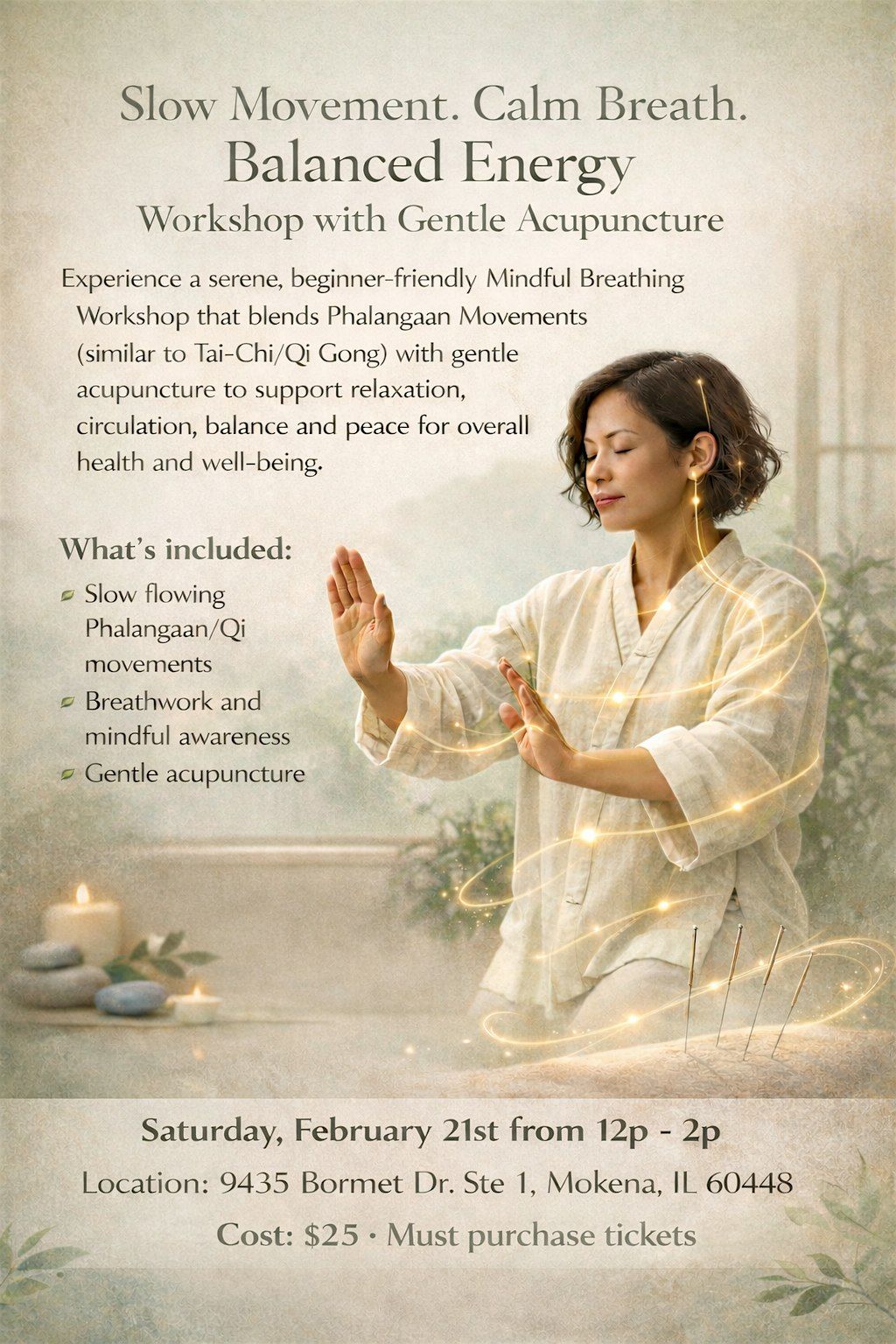 Slow Movement. Calm Breath. Balanced Energy. Workshop with Acupuncture