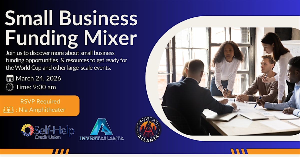 Small Business Funding Opportunities from Self Help Credit Union & Invest Atlanta along with World Cup Resources from Showcase Atlanta .About this Event