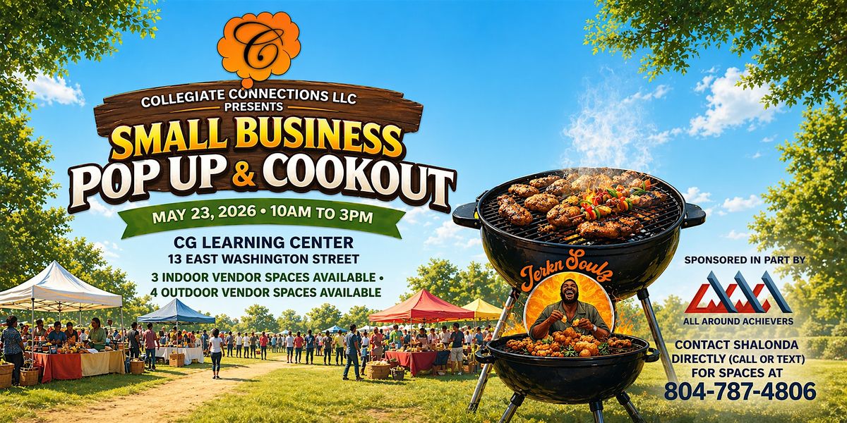 Join us for the Small Business Pop Up & Cookout, where local entrepreneurs showcase their products and services while you enjoy great food, networking, and an energetic atmosphere designed to support and celebrate small businesses.