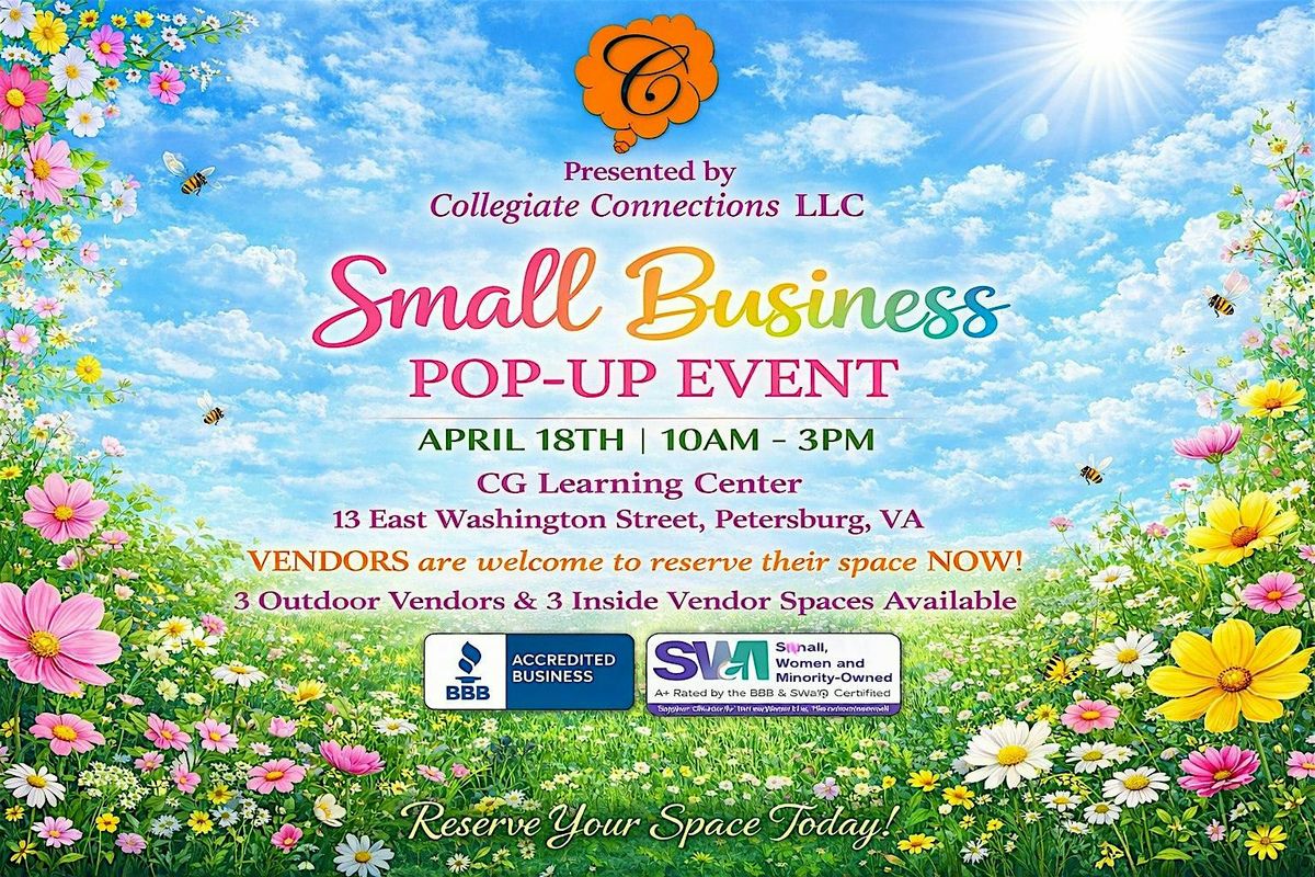Welcome to the Small Business Pop Up Market (Vendor Registration)! π Join us at 13 E Washington St on April 18, 2026 at 10:00 AM (Eastern Time) for a day filled with local treasures and unique finds. ποΈ If you're a small business owner looking to showcase your products, this is the perfect opportunity to connect with the community and grow your brand. Don't miss out on this chance to support local businesses and discover one-of-a-kind items! See you there! π