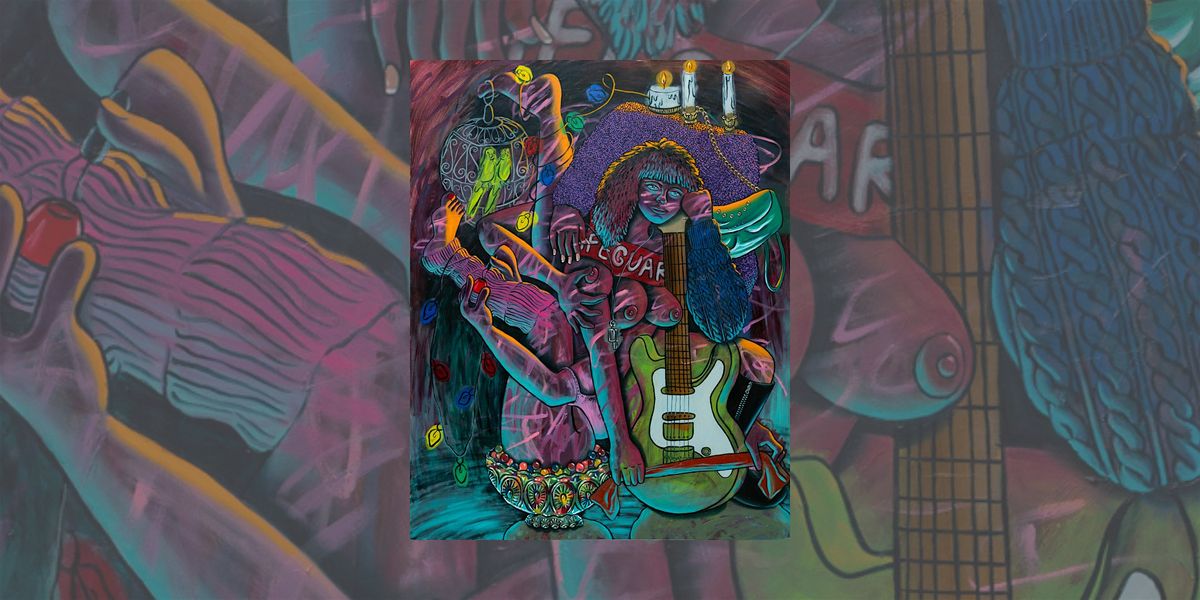 During the talk, Kircher will discuss the layered narrative spaces that unfold across her paintings, where bodies, decorative objects, and animal figures intertwine. Elements such as poodles, parrots, musical instruments, bird cages, fruit, and candles appear alongside female figures whose poses oscillate between vulnerability and command. These environments operate less like conventional portraits and more like staged tableaux where fragments of domestic life accumulate into something closer to allegory.