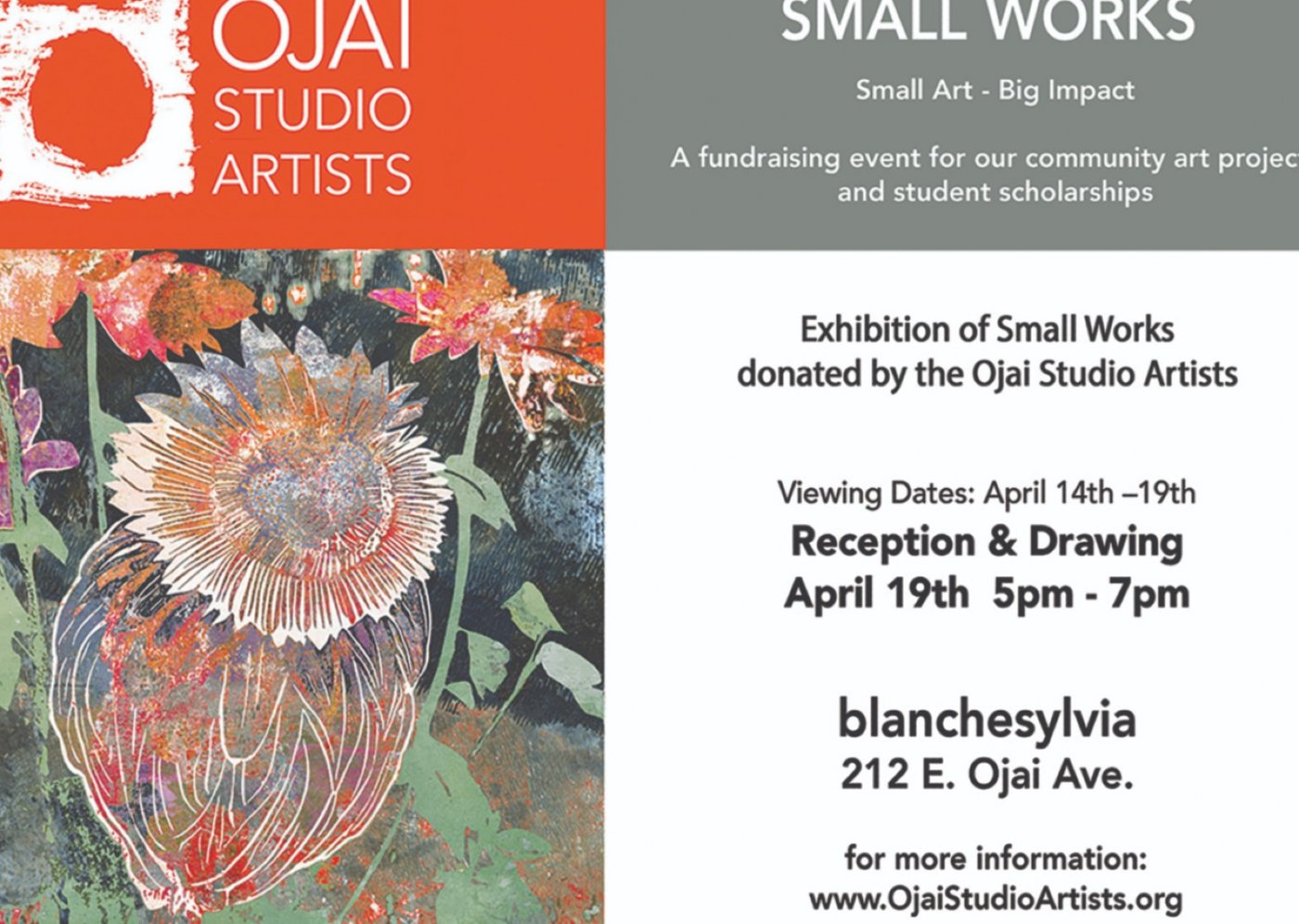 The Ojai Studio Artists invites the community to participate in a unique Exhibition Fundraiser taking place April 14-19 at blanchesylvia, 212a E. Ojai Ave, Ojai.