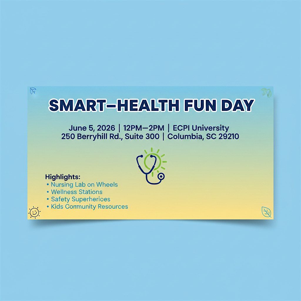 Join us at ECPI University on June 5th from 12 PM to 2 PM for our Smart-Health Fun Day! This event is all about helping our community stay healthy, active, and informed through a variety of fun activities. A major highlight is our Nursing Lab on Wheels, where you can step inside to practice clinical skills, learn first aid basics, and check out other health-related activities.