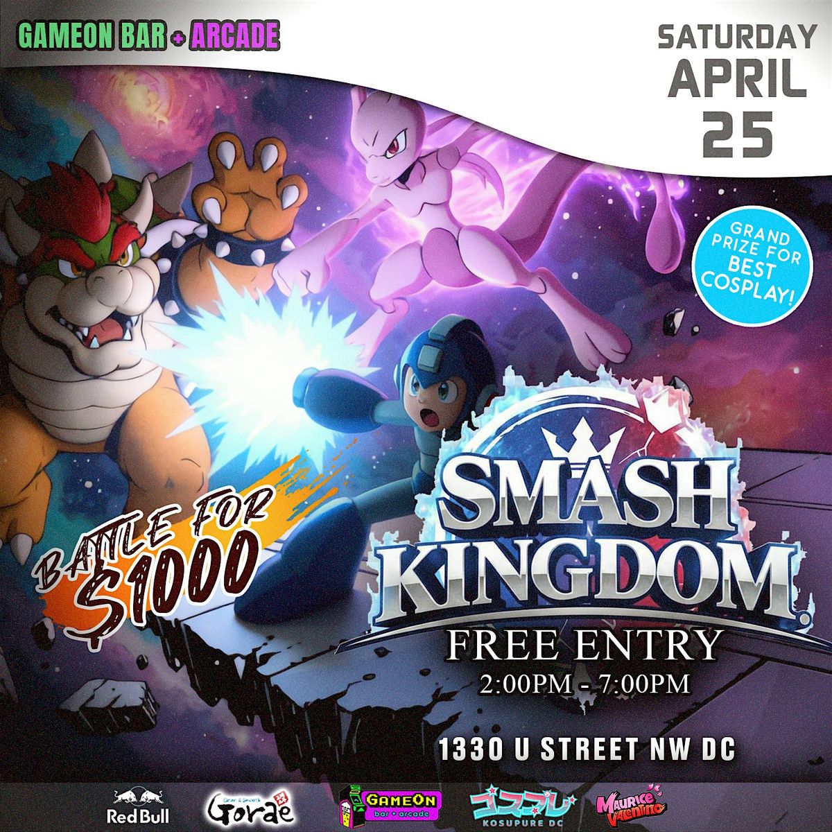 Game On! Join us Saturday, April 25, 2026 for a day of retro arcade games, smash tournament, cosplay and more at GameOn Arcade + Bar in Washington DC.