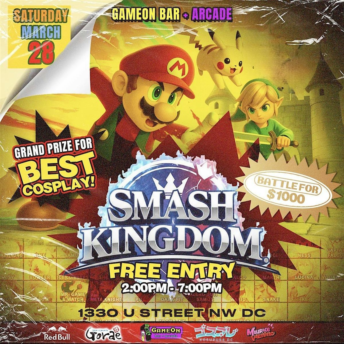 Game On! Join us Saturday, March 28, 2026 for a day of retro arcade games, smash tournament, cosplay and more at GameOn Arcade + Bar in Washington DC.