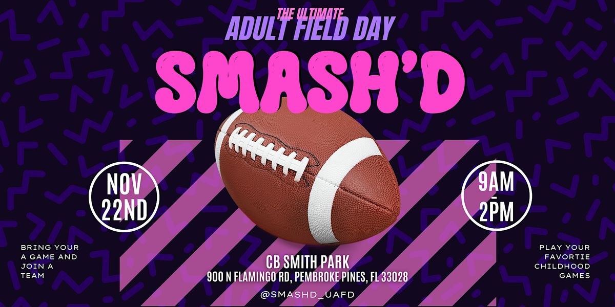 Join South Florida’s finest for a high-energy, tournament-style event designed exclusively for adults. SMASH'D brings back all your favorite field day games, with a competitive twist. Gather your crew and compete in teams of 10!