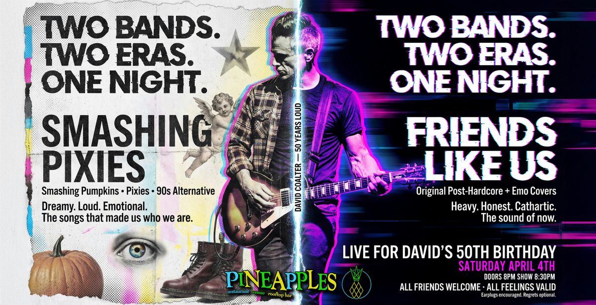 Our guitarist David's turning 50 the only way he knows how β on stage with both of his bands playing the songs that shaped him and the ones he's still writing.